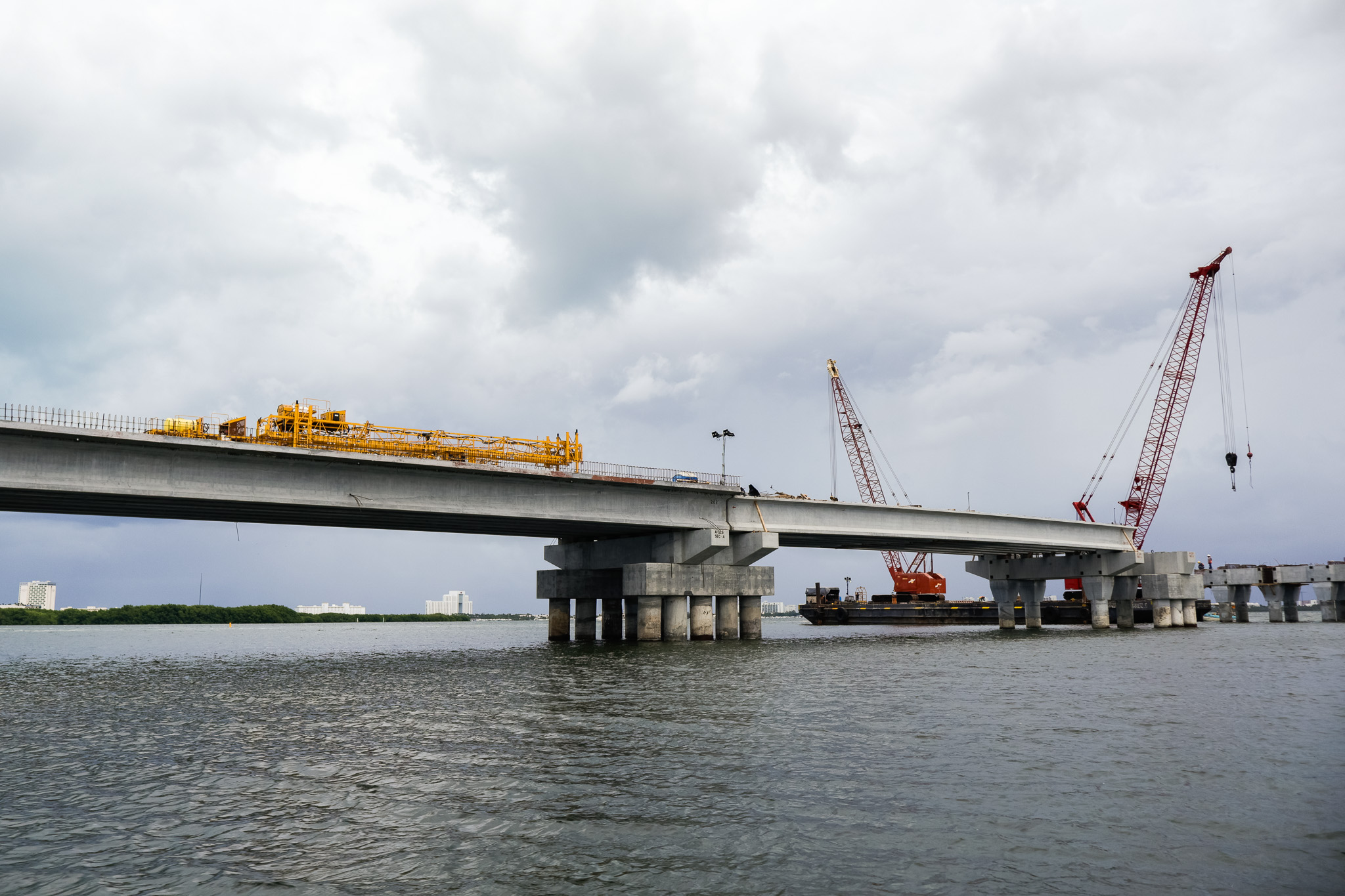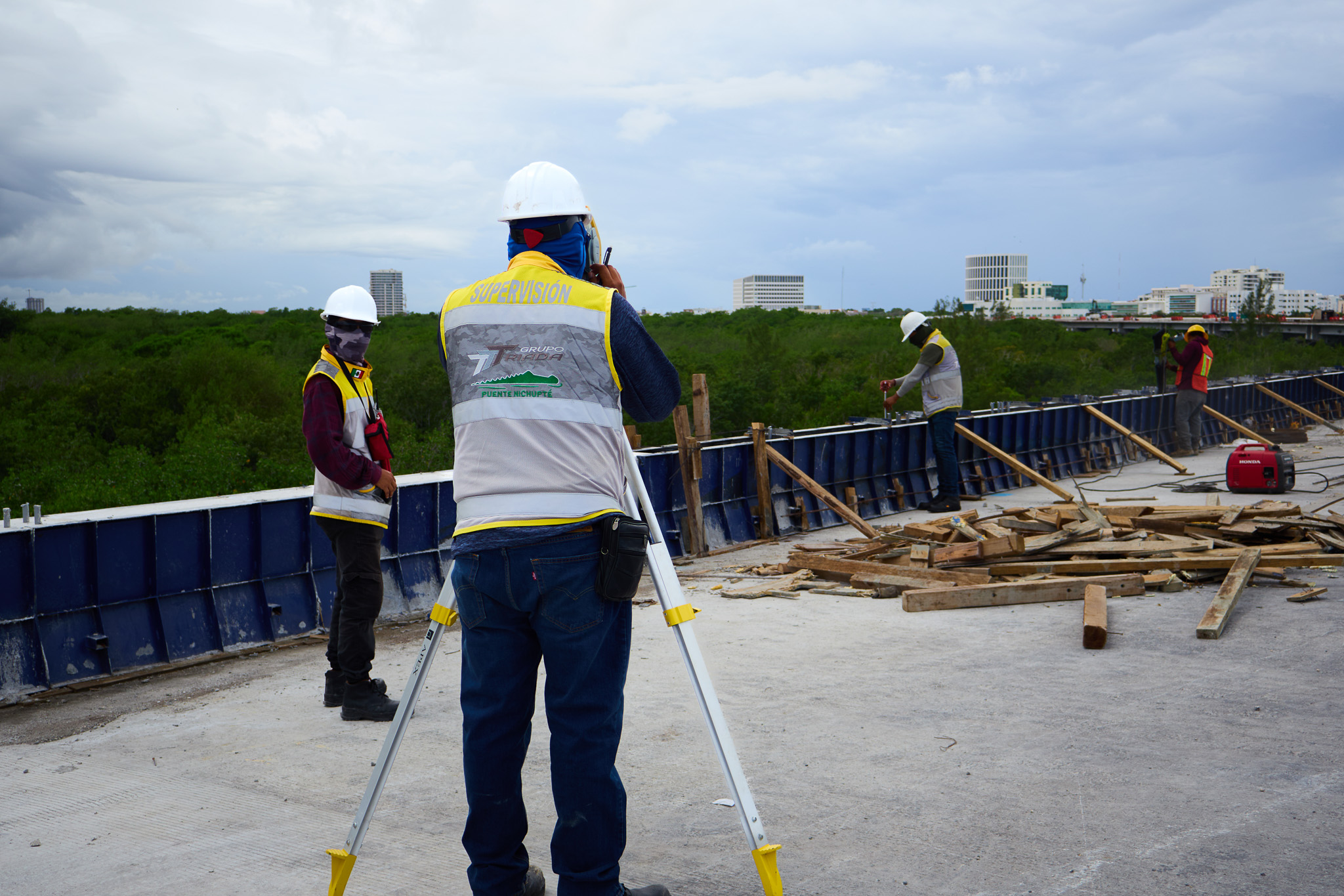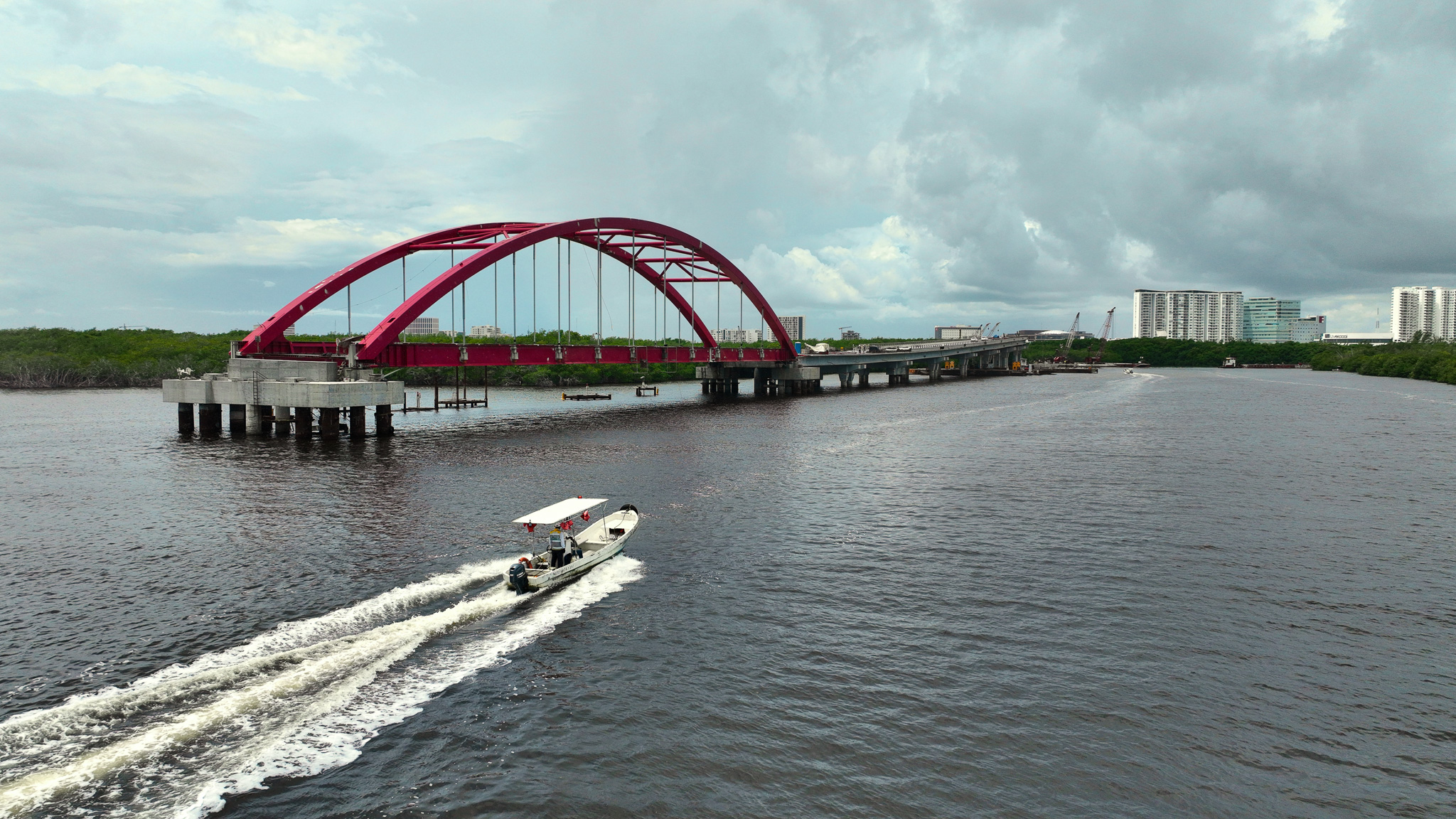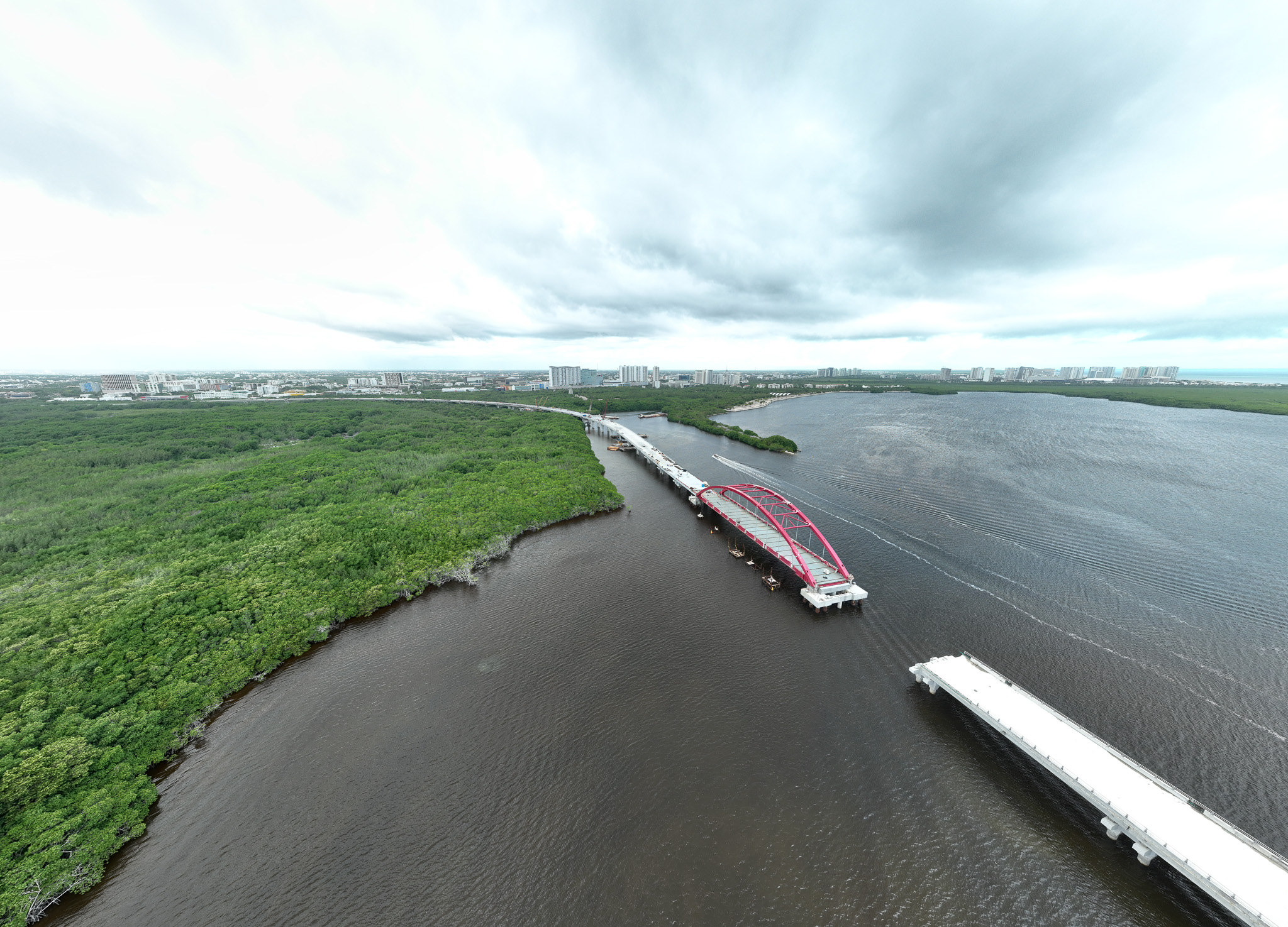 Supervisión de la construcción del puente vehicular que conecta los entronques Colosio y Kukulcán, atravesando zonas terrestres, manglar y laguna.