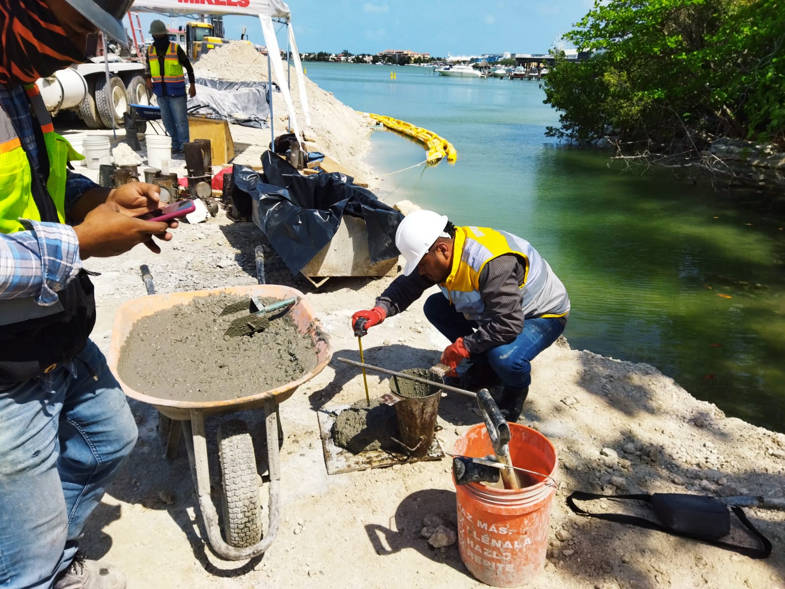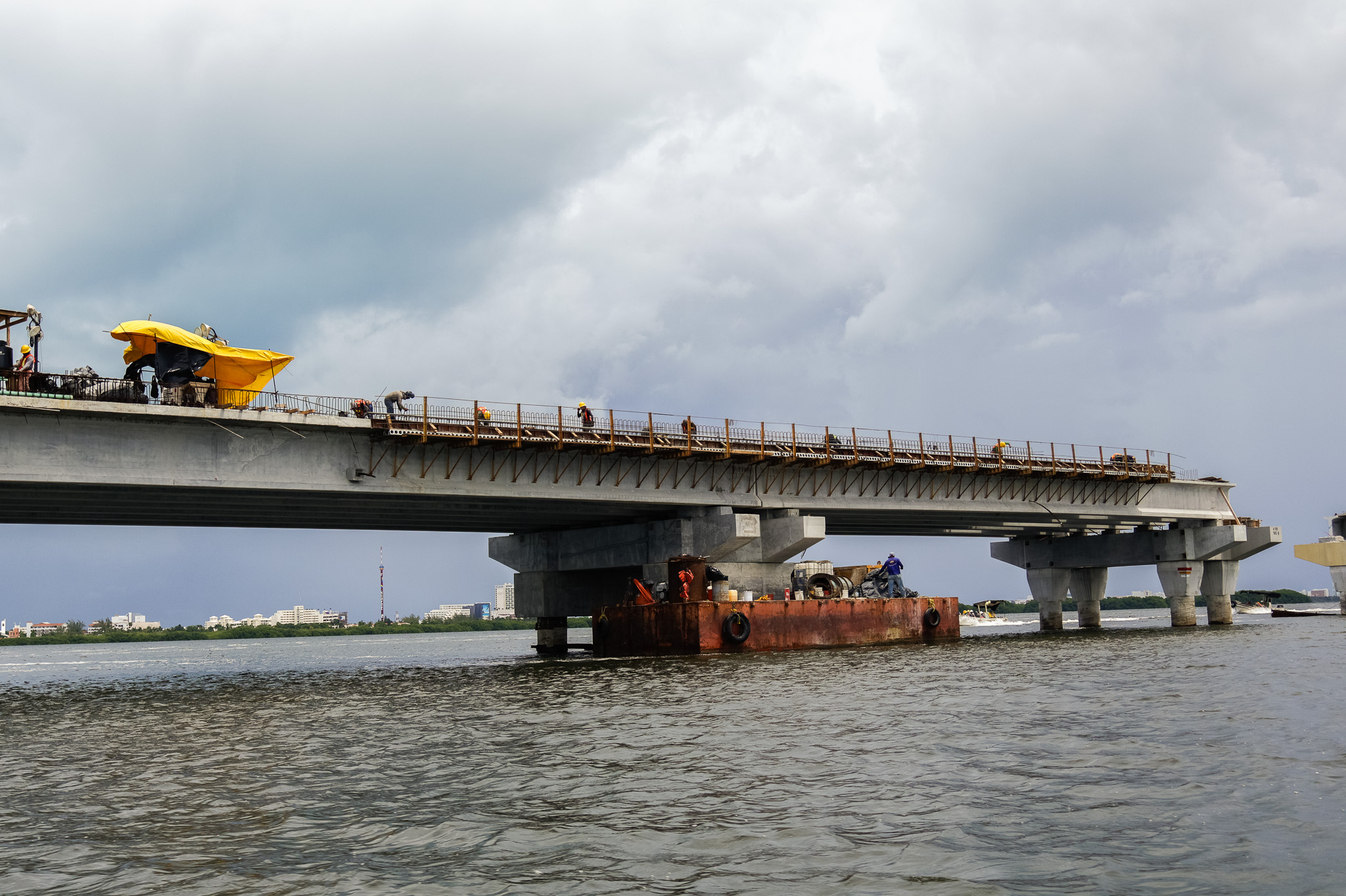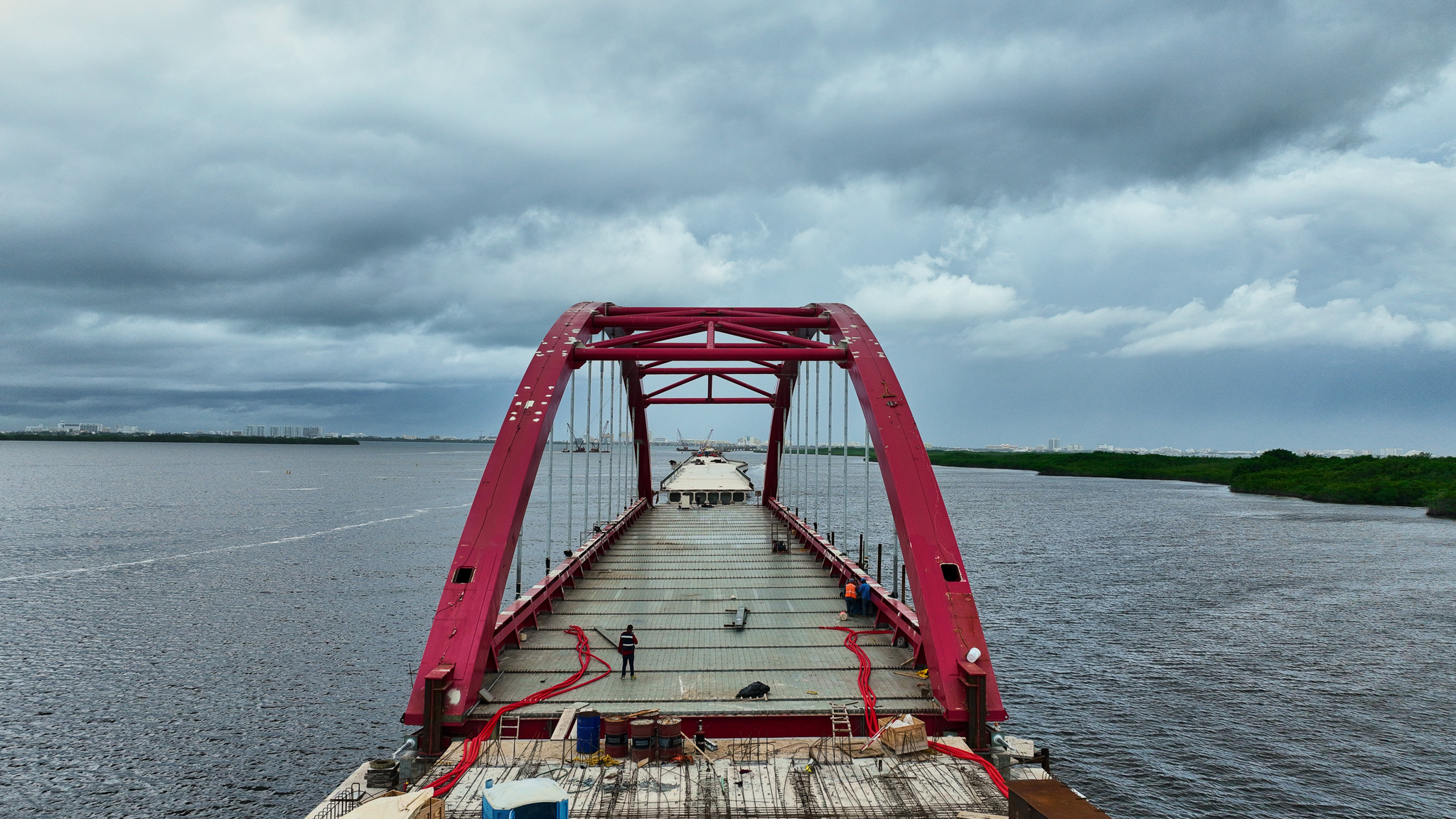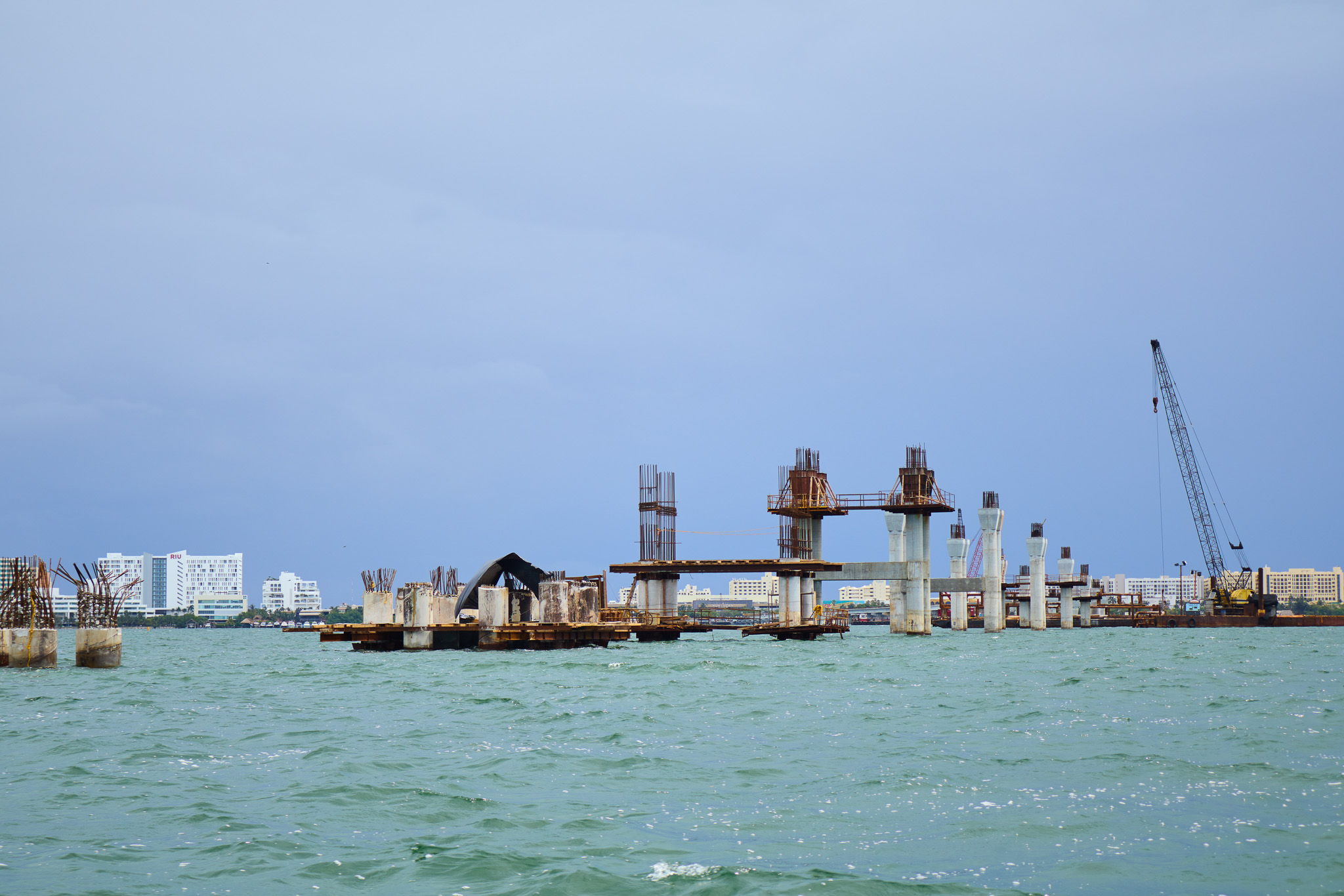 Supervisión de la construcción del puente vehicular que conecta los entronques Colosio y Kukulcán, atravesando zonas terrestres, manglar y laguna.